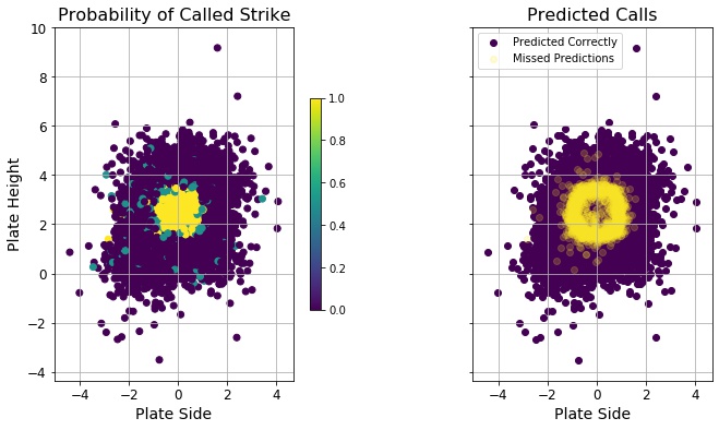The data were a collection of pitch location data from different minor league baseball games. The goal was to predict whether or not a pitch is a called strike - so I am only given pitches at which the batter did not offer. In theory, calling pitches should only depend on position but until the league embraces the robot umpire revolution, there is always room for human error.